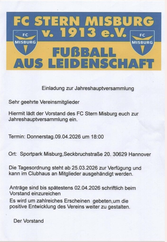 Liebe Vereinsmitglieder, Freunde und Förderer des FC Stern Misburg